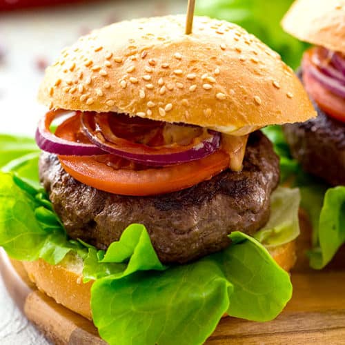 Patti with Choice of Coleslaw, Potato Chips or French Fries on a Toasted Bun with Lettuce, Tomato and Onion